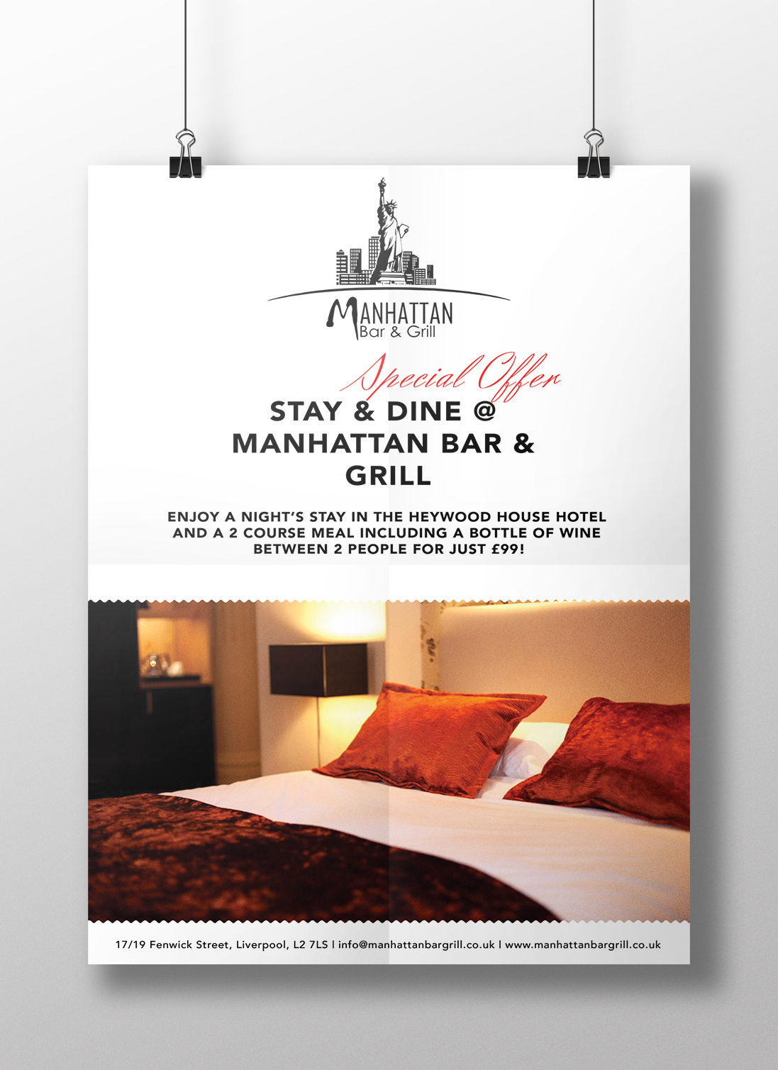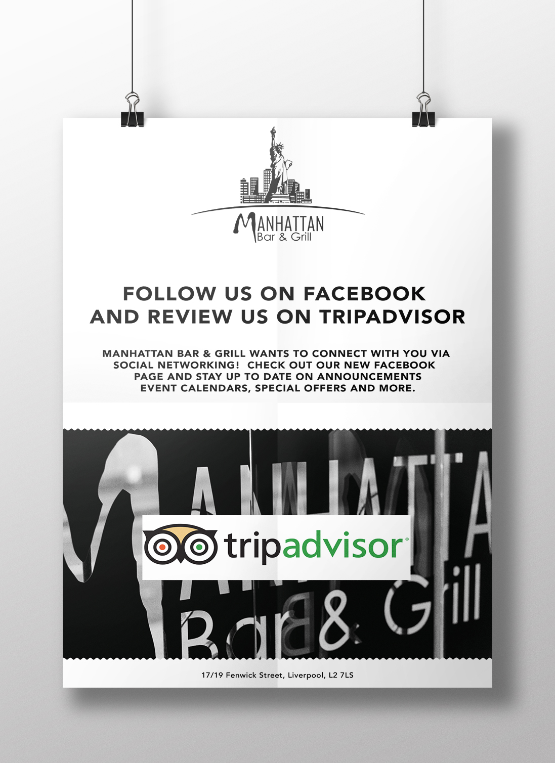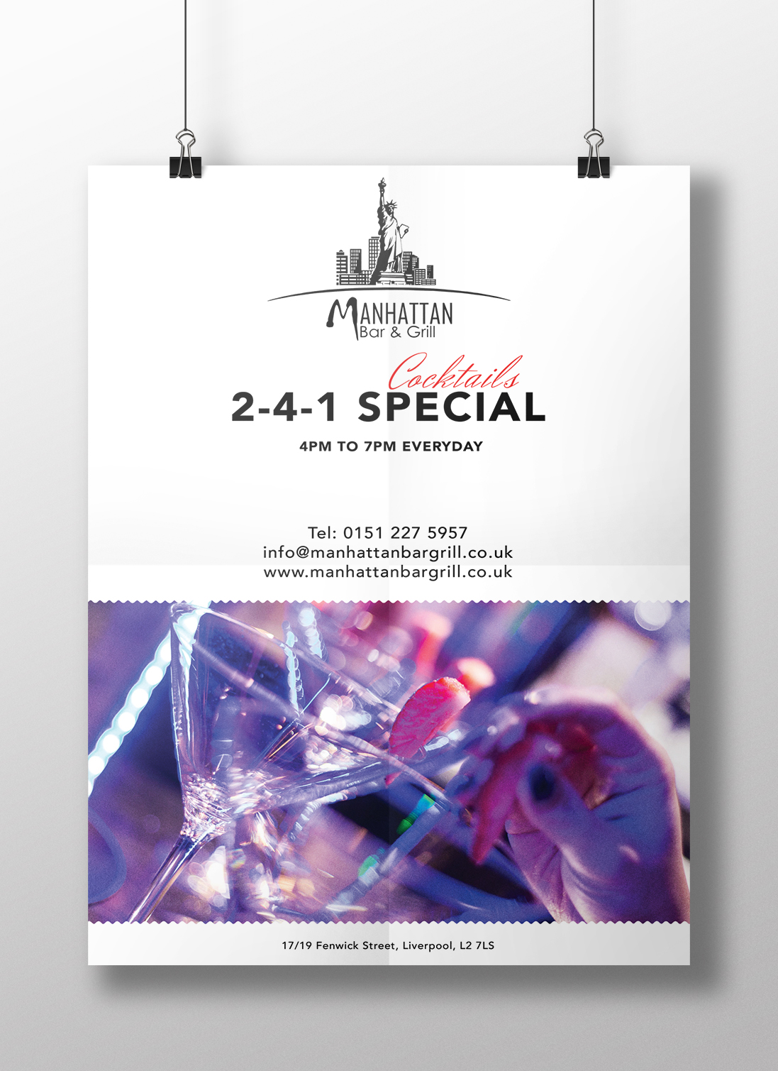 Manhattan Bar and Grill is a New York inspired restaurant and bar located on a busy corner site in Liverpool’s fashionable business quarter. Come join us for exceptional food, fresh fruit cocktails and a great night out.